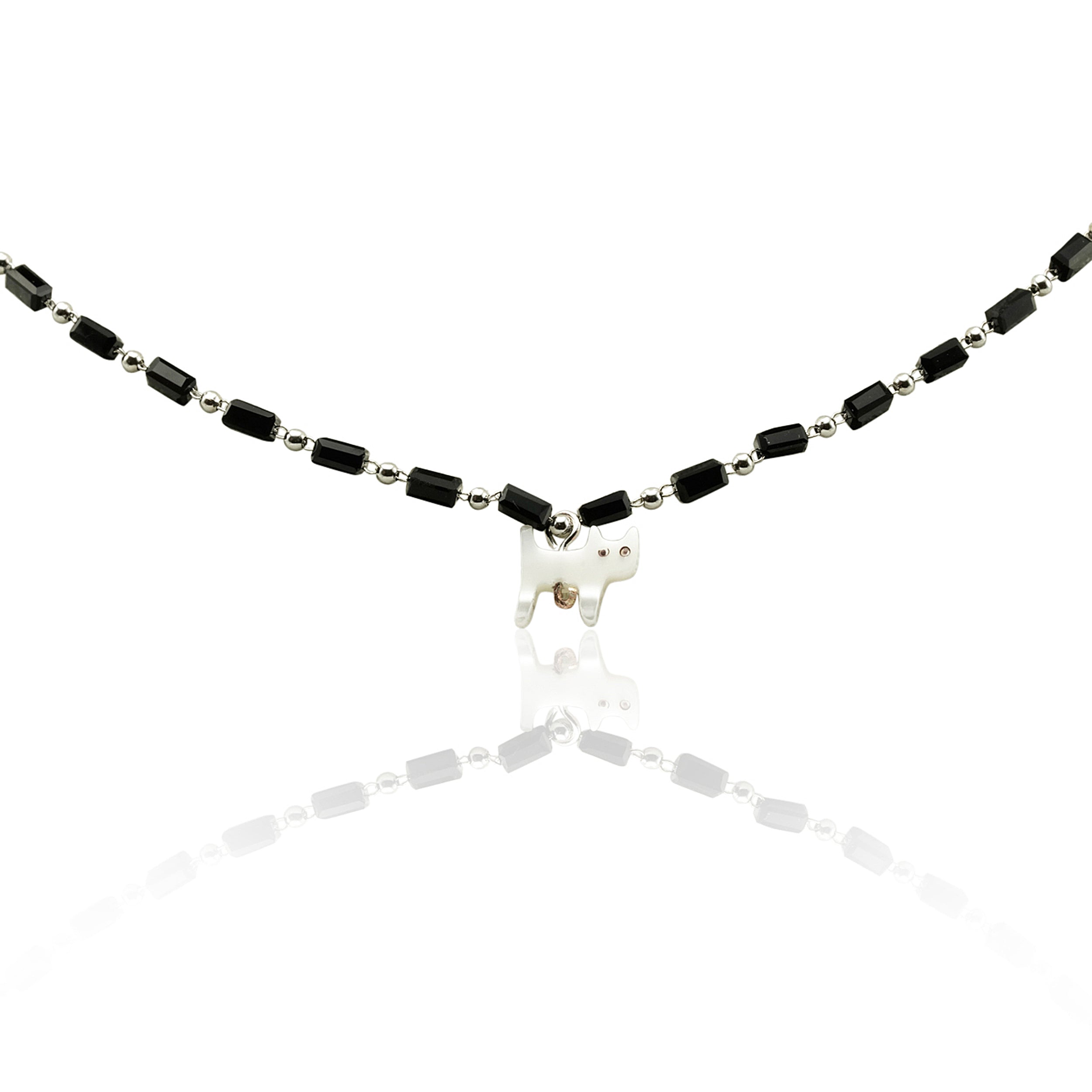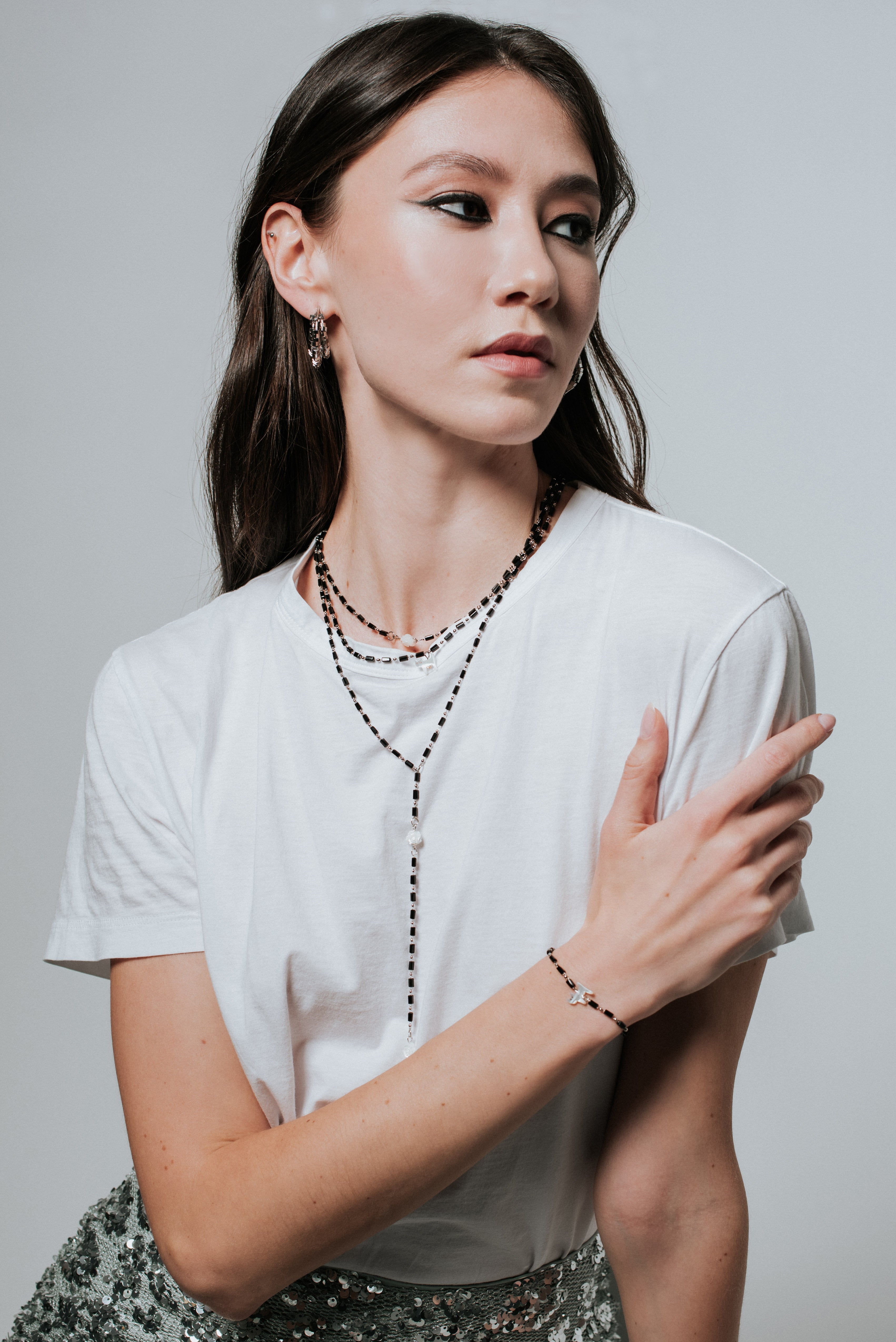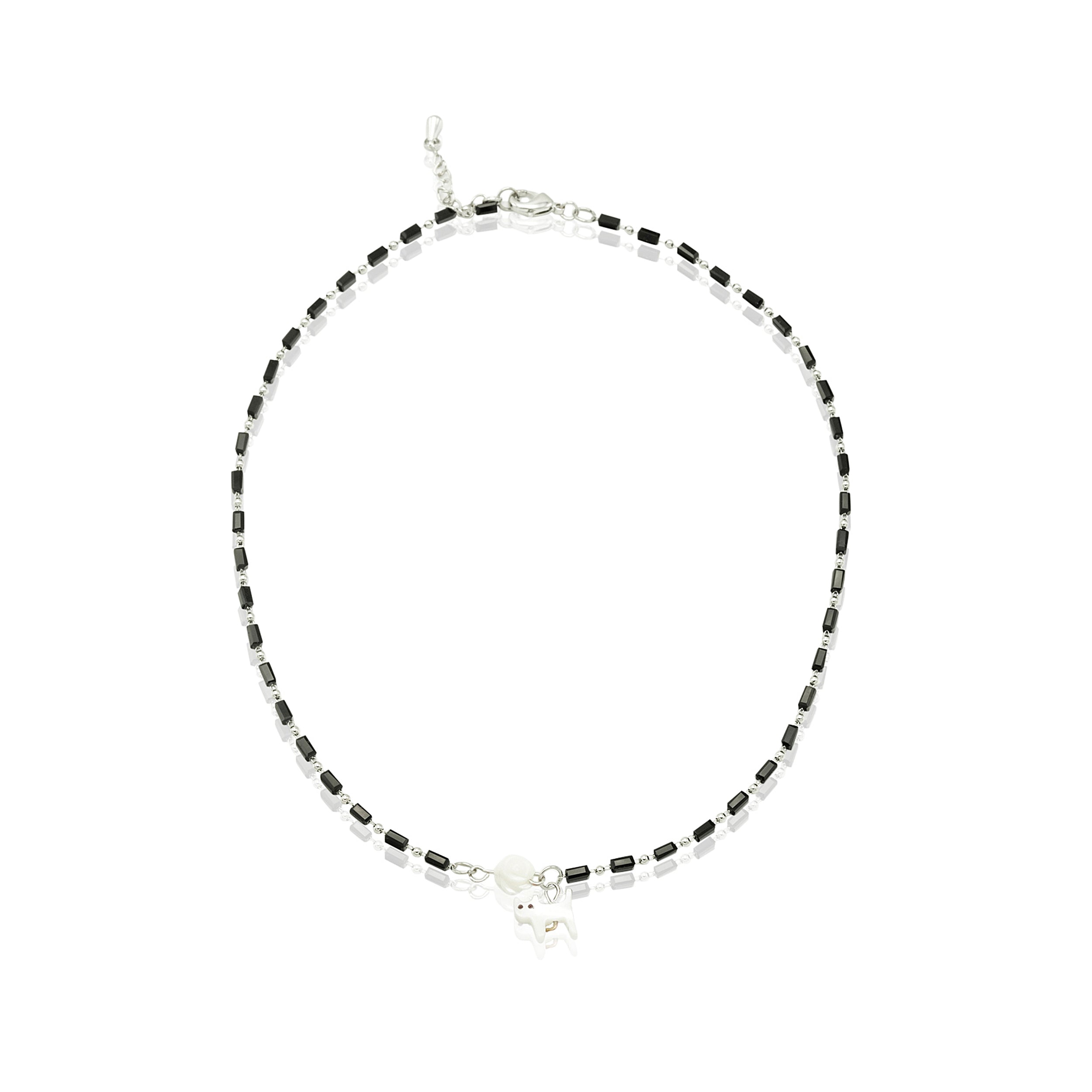 Choker necklace with black agate beads, rose pendant made of mother-of-pearl