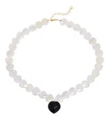 Necklace with mother-of-pearl beads in the shape of a heart, with a Heart pendant made of black agate, size 1.6 cm