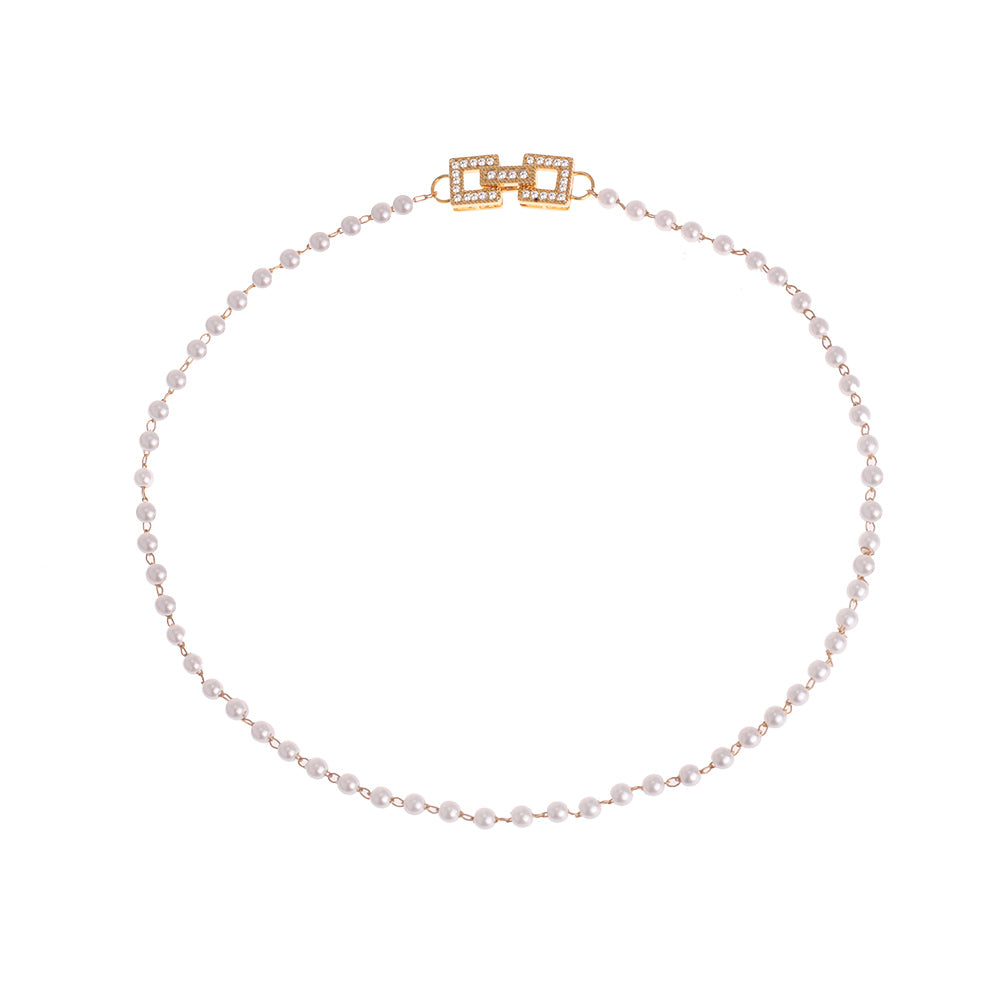 Majorica pearl choker with gold chains
