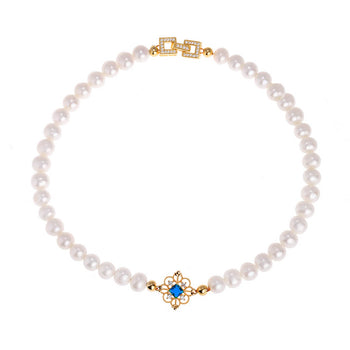 Choker, pearl short necklace, with blue crystal pendant