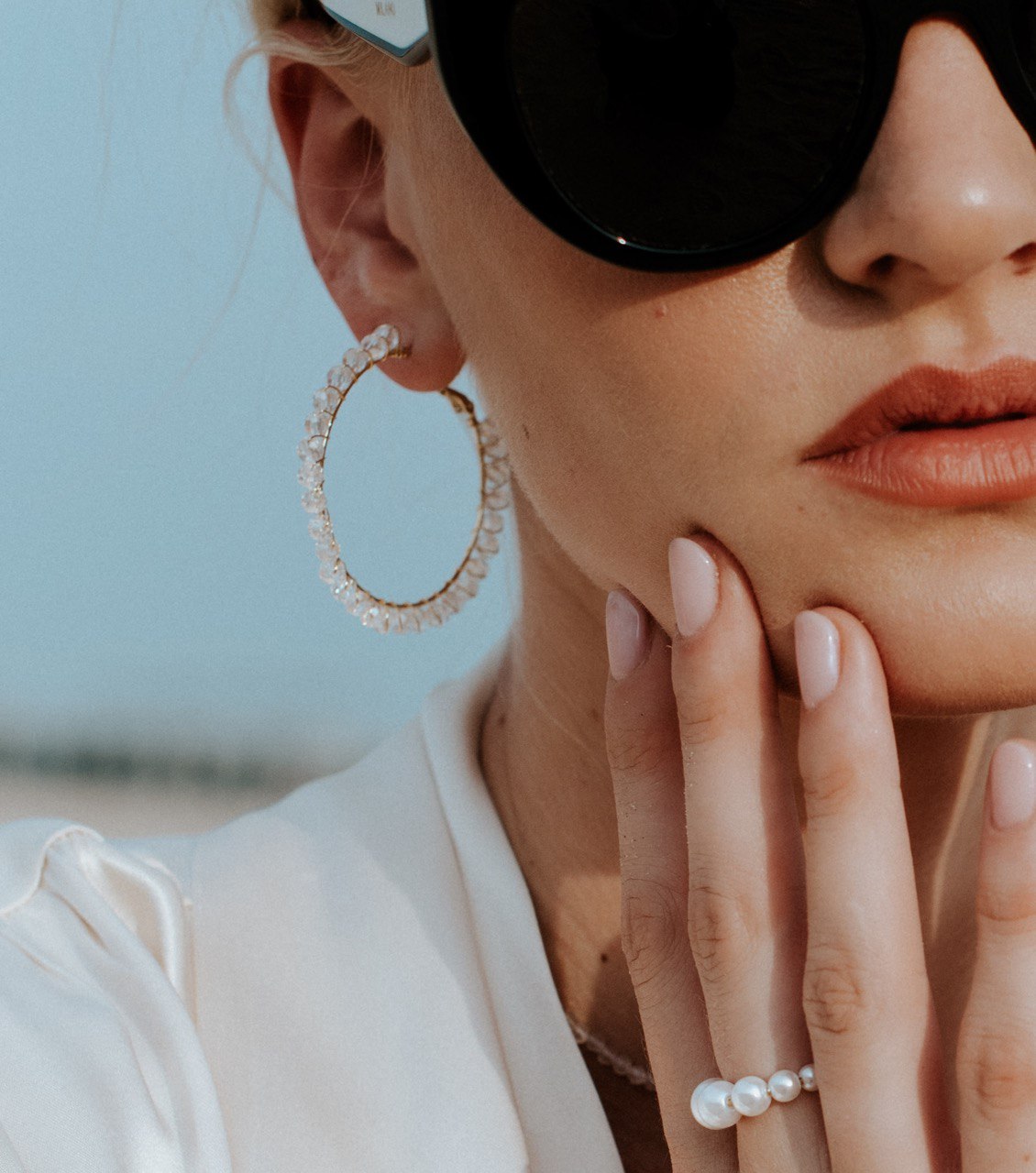 Ring earrings with crystal