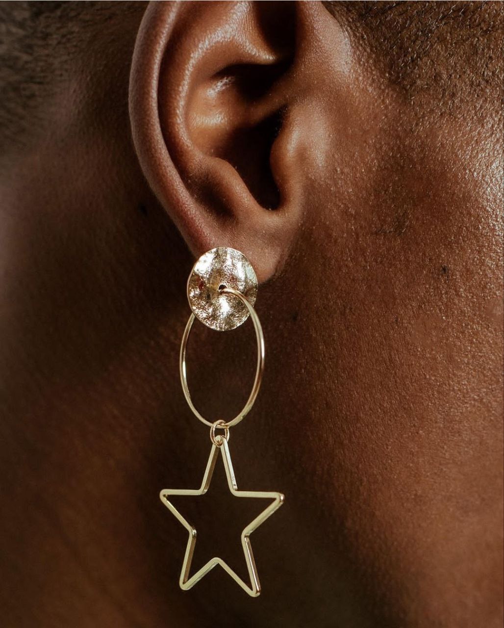 Ring earrings with star pendant