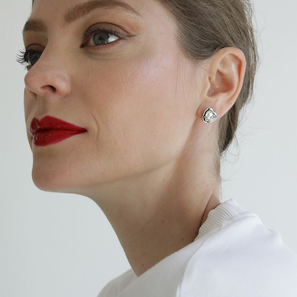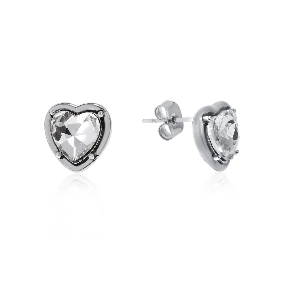 Heart studs with cubic zirconia. Rhodium plated steel.