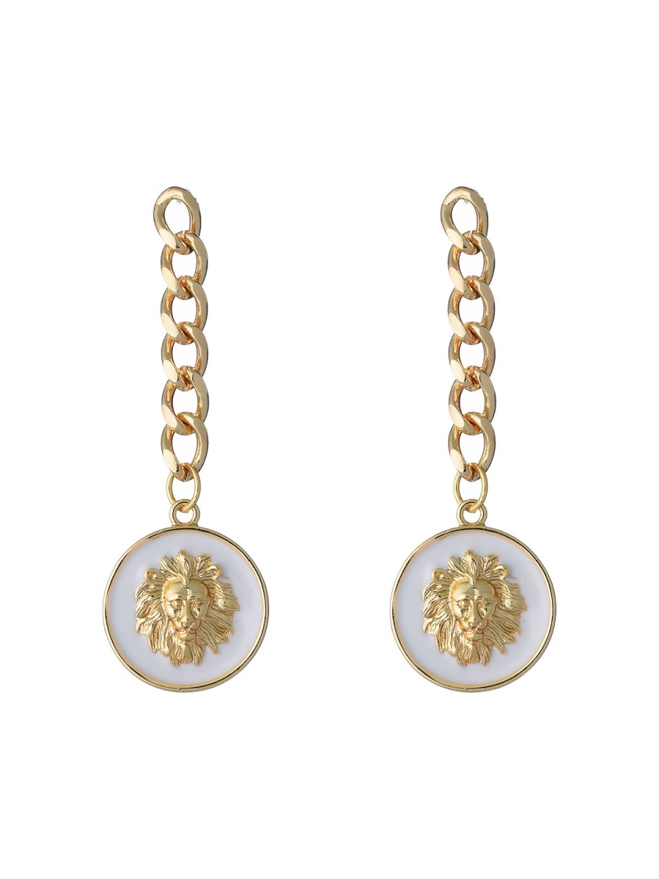 Long chain earrings with lion pendant in enamel