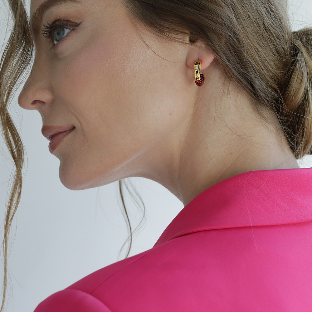 Hoops Dark Red Enamel Earrings Gold
