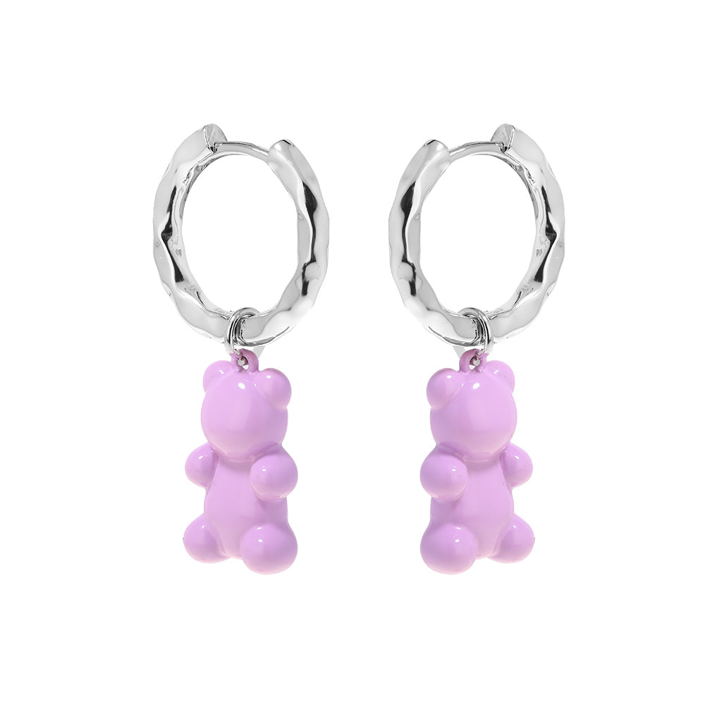 Violet Bear Hoops Earrings Silver