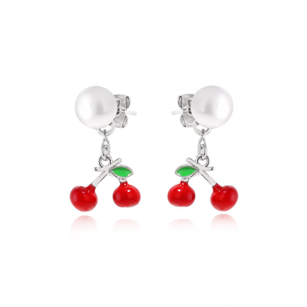 Earrings with Cherry pendants Rhodium