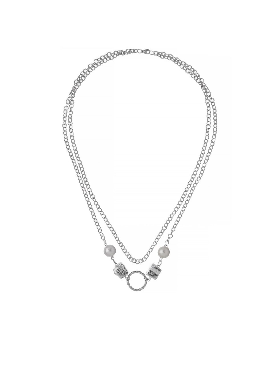 Silver necklace with cotton pearls and natural silver stones.