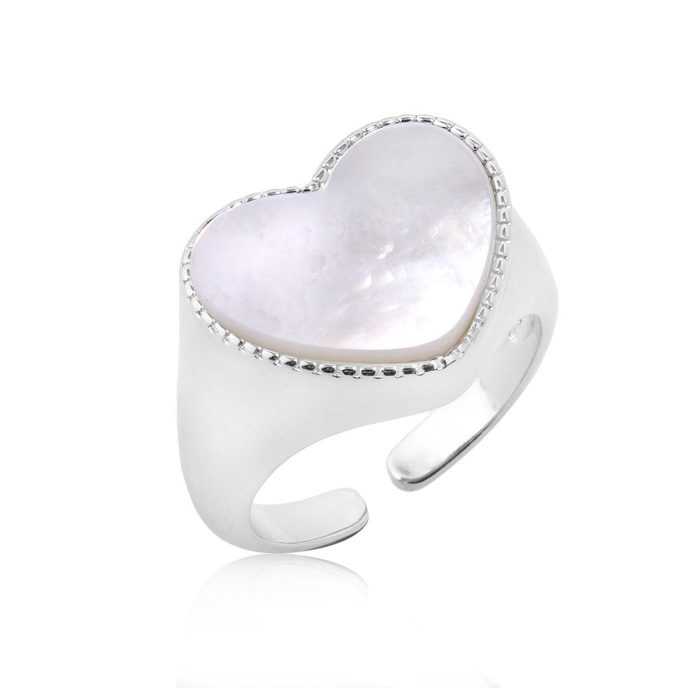 Heart-shaped signet ring with mother-of-pearl