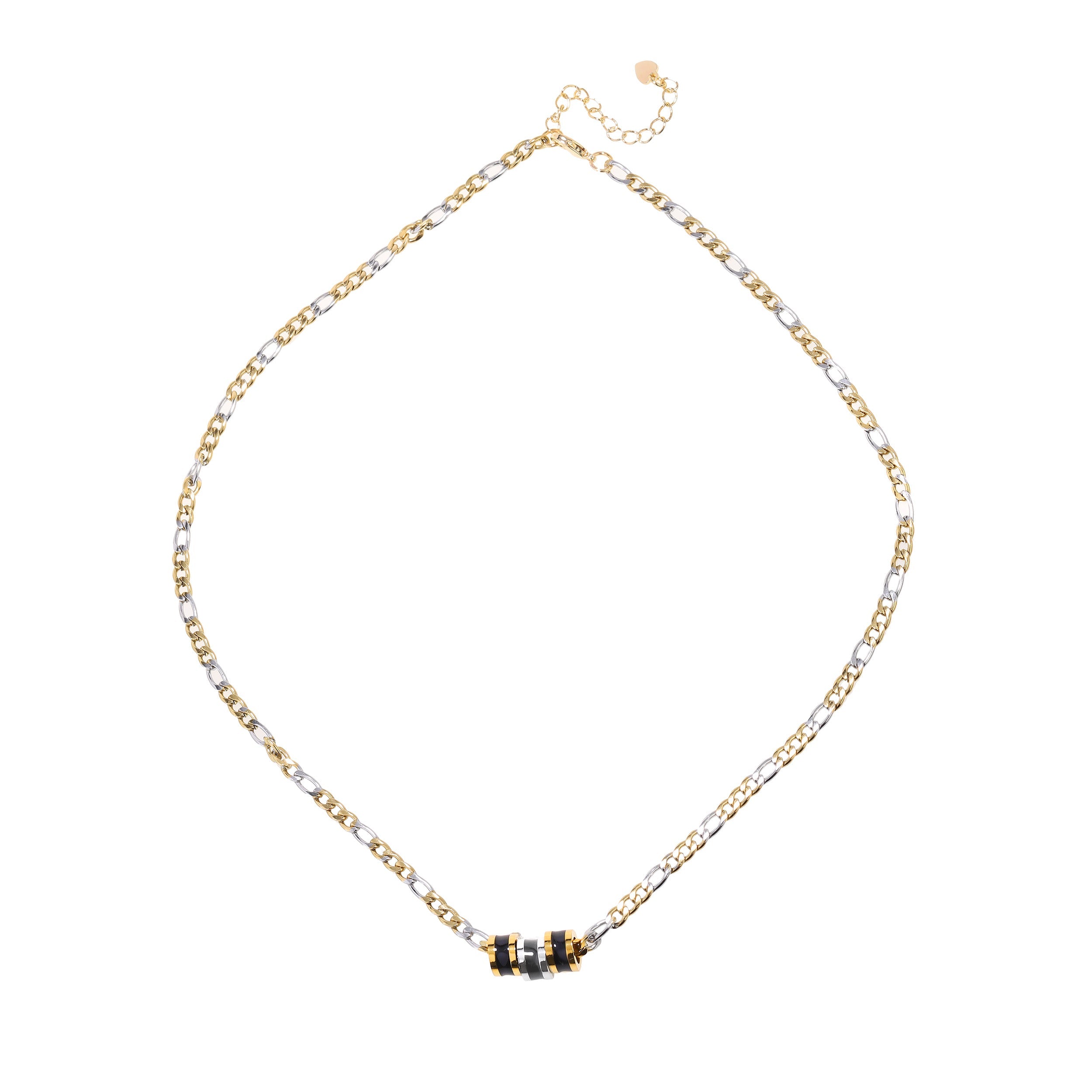 Bicolor unisex chain necklace, black enamel pendants